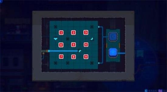 7、打开电箱之后,又进入小游戏,就是旋转把光线打入两个按钮中。首先9号旋转3次,4号旋转2次,5号旋转2次,4号旋转1次,3号旋转3次,2号旋转1次,6号旋转2次,3号旋转3次。破解后,时钟会变为休息状态。