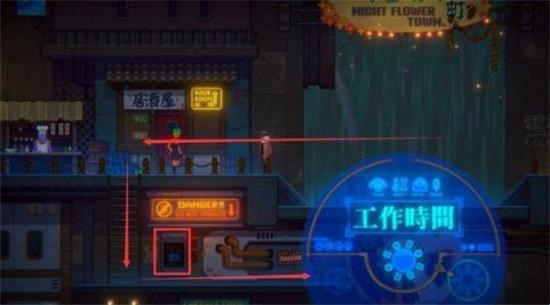2、我们到达了花夜下町,一路往右跑,路过工作台,待会儿拿到东西后可以在这里合成,在右边拿到【美容热熔枪头】。