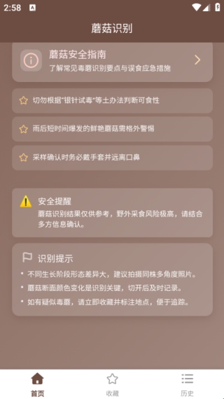 2、不仅能识别出蘑菇品种,还会提供有毒蘑菇的安全指南及提醒。