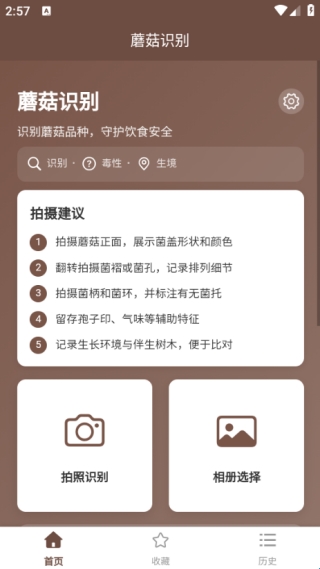 简单直观的操作界面:识菇APP的设计界面友好,功能布局清晰,让用户能够轻松找到所需的功能,快速进行蘑菇识别。