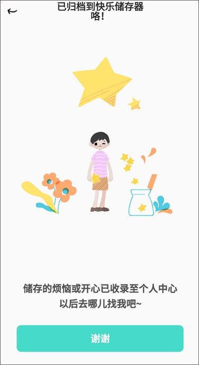 ●点击【把这个快乐储存起来】,你还可以继续选择,包括:说说这个开心是怎么储存的。当你的快乐储存好了,解忧娃娃就会拥有一个装满快乐的星星罐。