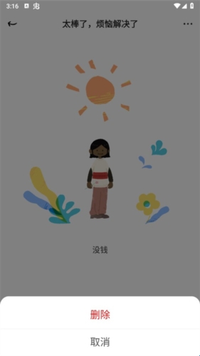 ●如果你突然不想记录这个烦恼了,你可以点击右上角的图标,删除这个烦恼。