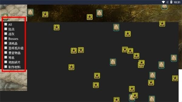 2、可以在地图上进行各种筛选,收集道具也是很轻松的。
