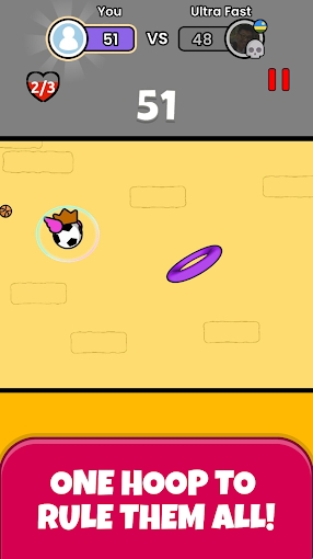 2、点击即可让篮球跳跃,去穿越面前出现的各种篮筐。