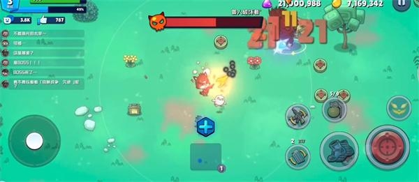 4、击败关卡里的敌人会随机掉落不同的武器,靠近后可以点击绿色按键来拾取这些武器。