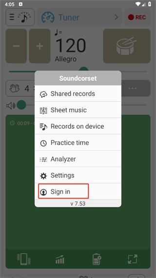 5、打开调谐器,记录您的游戏过程。选择节奏模式,使用黑屏电池节能模式