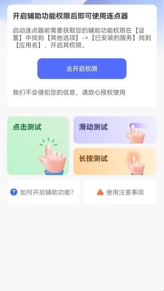 2、在首页,是可以去开启各种权限,进行点击测试,滑动测试等操作。