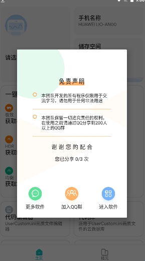 1.下载安装画质侠app,之后打开,进入之后,查看免责声明;