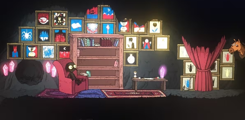 1、书架上的【想法】完成的部分会被划掉,所以之后需要完成的也可以参考这本笔记实现,其中五个颜色的虱子各画一副有成就。