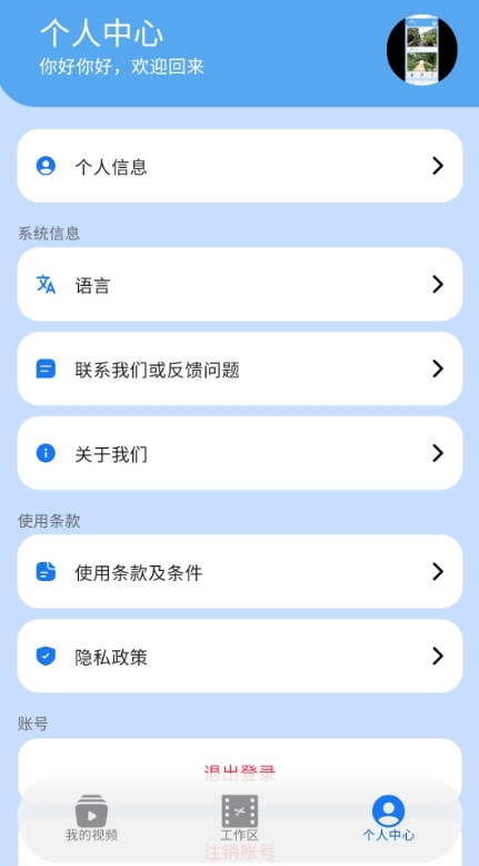 4、任你输入正确的账号和密码,系统快速为你进入首页在线剪辑视频。