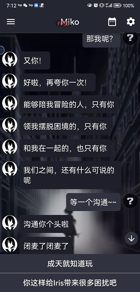 1、与现实时间同步的聊天机制,Miko的作息、活动与真实世界一致