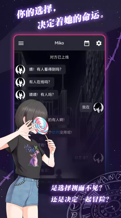 异次元通讯次元复苏版是一款充满冒险的文字解谜手游,游戏内为玩家准备了多个结局支线,你的每一次选择都会影响最后的走向。其背景主要介绍了主角miko在逃亡过程所发生的神奇故事,而与其他角色所产生了意外的纠缠,因此,玩家需要帮助miko解开命运谜团,重回生活轨迹!