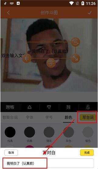 点击填写台词,编辑台词以后就能马上发