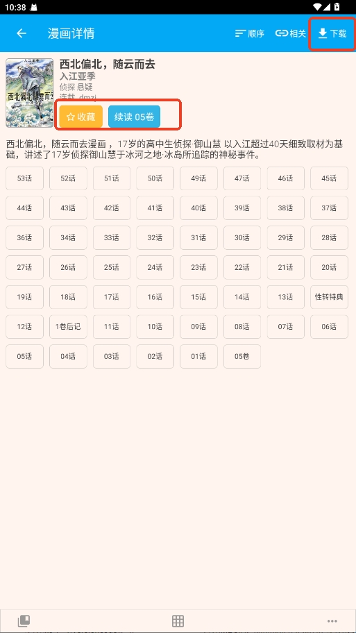 7.在详情页可选择下载、收藏、续读等操作。