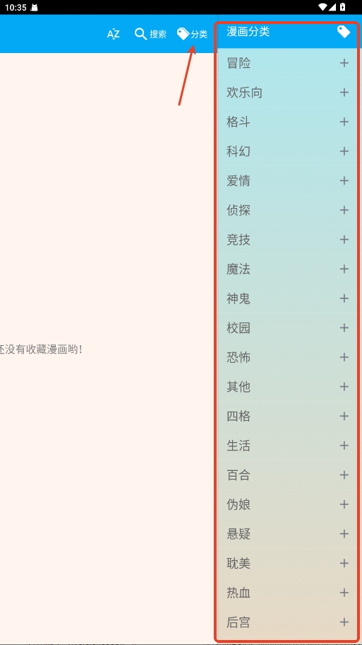 3.点击右上角分类按钮,可预览众多分类选项。