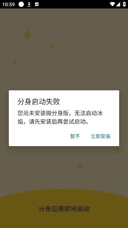 3、界面简洁,状态清晰:启动页只保留必要提示和图标,底部一句“分身应用即将启动”,让你清楚知道当前操作进度;若缺少引擎组件,也会以弹窗明确告知原因。