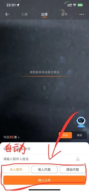 2、扫描条形码后点击确认出库。