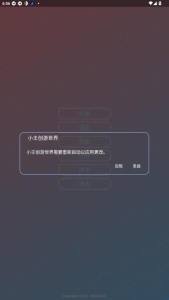 当你首次授予悬浮窗或其他关键权限时,系统需要重新启动应用以使配置生效。只需按照提示点击“重启”,再重新打开小王修改器即可正常使用。