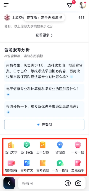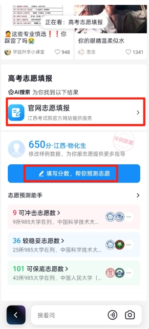 2、AI抖音会根据你的输入,为你输出最懂你的答案。用户可以直接进入志愿填报网站进行志愿填报事宜,也可以在正式填报志愿之前,预测一下自己的最佳志愿。