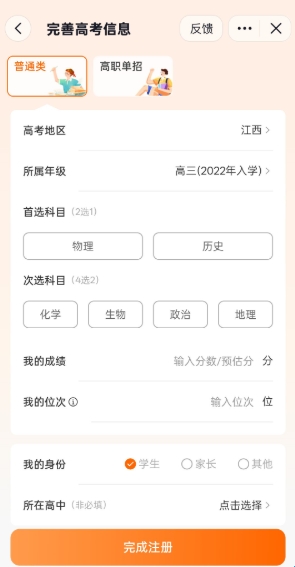 4、根据自己的情况如实填写即可,填好之后点击【完成注册】。