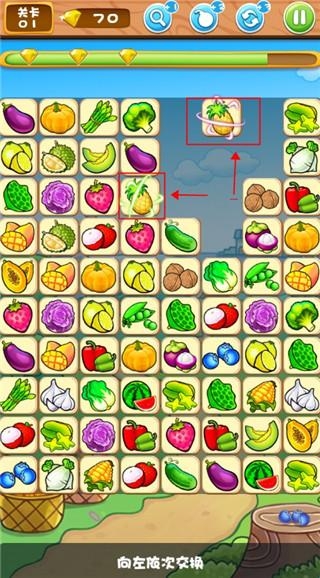 2、将相同的三张或多张果蔬图片进行碰撞或规律排列达到消除条件;