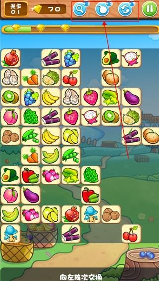 3、直接点击排放在一起的三张或多张相同的果蔬水果图片达到消除条件。