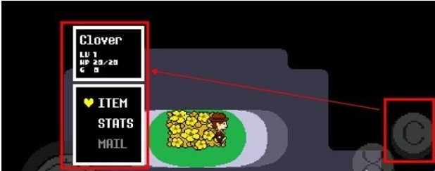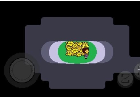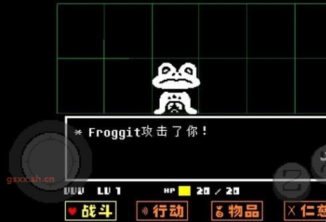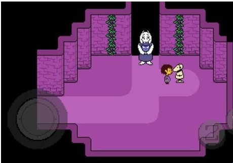 4、在北面的藤蔓房间遇到青蛙froggit,通过赞美它使其开心并逃离战斗。Toriel帮助你通过右面水池上的尖刺陷阱。