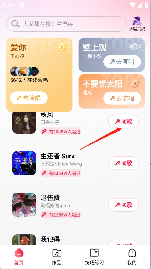 手机全民唱k怎么唱歌