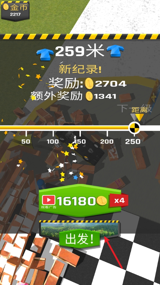 5、当你的距离超过了关卡限制后,就能够解锁新关卡后。
