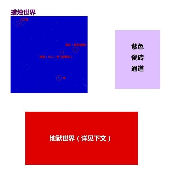 2、涂鸦世界:进入电梯有概率判定,电梯出来往上层阶梯前的三角锥有1/4概率会消失,可以前往树海A。电梯出来往下两层,调查地上的圆洞可前往湖回廊A。电梯出来往下一层后,跟左下角房间的发狂鸟人调查会随机更换游戏框架颜色。