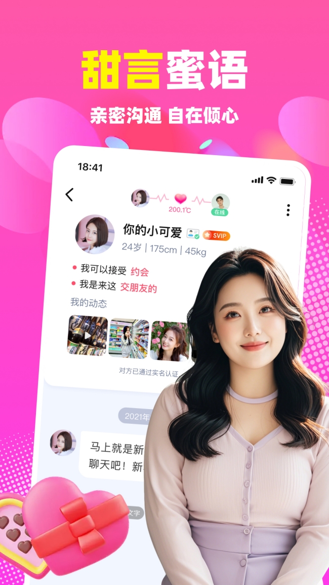 本地蜜友是一款主打真人交友的免费聊天软件。软件会根据用户的信息进行相关的缘分推荐,对方的名称、年龄、地区等信息均会显示,并且全都经过系统验证,拒绝虚假欺骗等情况发生。软件支持文字、视频等聊天方式,还可以通过动态广场来互相了解。欢迎有兴趣的朋友们下载体验。