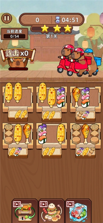 悠闲消除吧是一款超级好玩的休闲消除类手游。游戏里有非常多可爱的卡皮巴拉,玩家将会经营一个专属的小店,满足每位顾客的订单需求,并且游戏的操作特别简单,只需要将玉米、寿司、鸡腿等三个相同的食物放在一起即可完成消除。游戏还有图鉴、签到、任务等玩法,感兴趣的小伙伴们欢迎在本站下载。