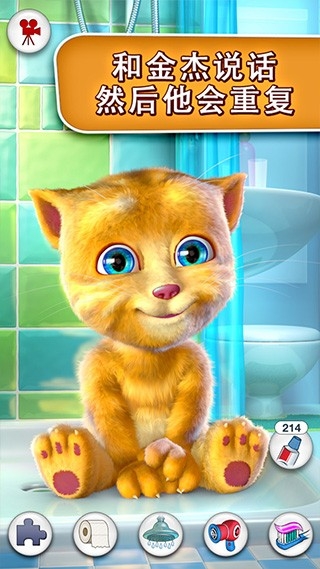 2、跟金杰说话:跟这只小猫咪说话,他会用他可爱的声音重复你的话。