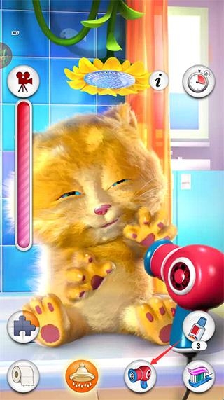 1、照顾金杰猫的每一个方面,例如刷牙、洗澡、吹毛、吃东西、上厕所、玩玩具等等,等你来玩;