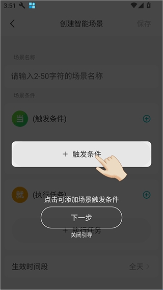 3、设备添加后还可以进行场景的添加,设置触发的条件