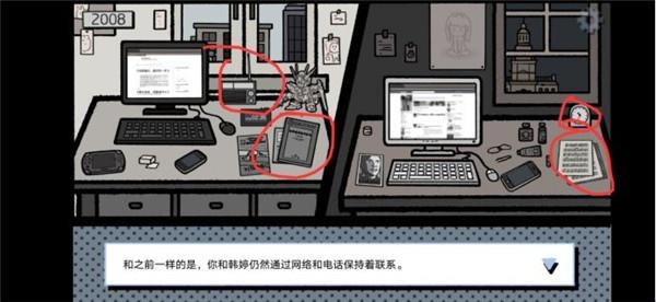 8、接下来点击桌面上的小物件过剧情,像“不说了,还有事…”这种话一次都不要点。