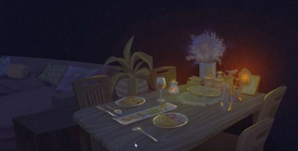 3、纪念日当天按照之前方法再来一遍,在冰箱里盘子上拿到钥匙,然后打开房间里的铁盒,拿到笔后去阳台,把两个心连起来,拿墙上礼物灯光中的项链,洗衣机旁的纸条,返回客厅打开礼物盒,依次点击盒子里面的照片。