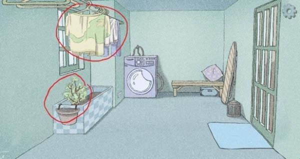 需要先在场景2卧室的椅子上找到脏衣服,打开门到阳台去,就会直接出现顺便把衣服洗了吧。