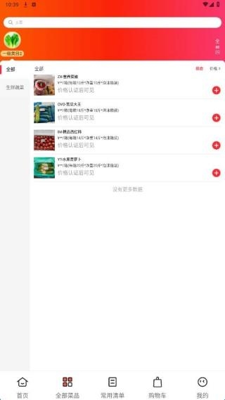 3、在全部菜品页面可按分类挑选蔬菜、水果等生鲜商品。