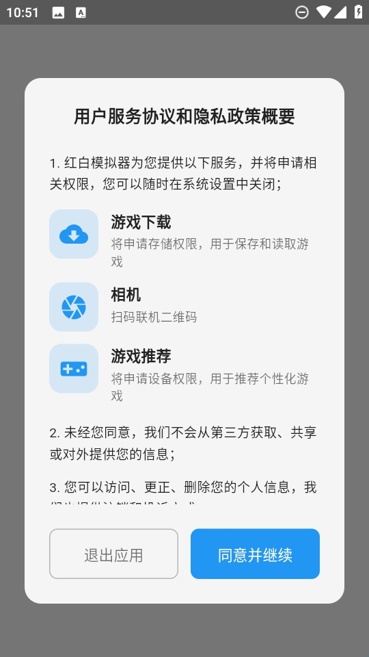 1、在本站下载红白模拟器app,首次使用需要同意用户协议以及需要的权限。
