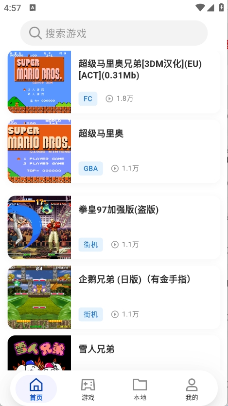 2、来到主页以后,可以看到各种不同分类的街机游戏。