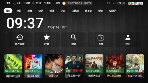 首播影视是一款纯净无广告的免费电视盒子软件。软件涵盖电影、剧集、综艺、动漫等海量的影视资源,首页不仅会持续推荐最新内容,而且还显示了最近观看、收藏、搜索、直播等一系列实用功能,带给用户极致的观影体验。软件界面清爽,兼容性强,有兴趣的小伙伴们赶紧下载吧。