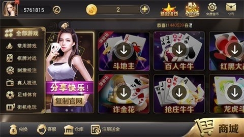1、全新上线,里面有大家喜欢的多种棋牌游戏,麻将,斗地主,牛牛等多种选择;