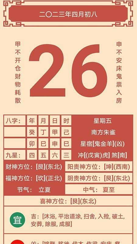 【权威黄历】提供黄历,宜忌,时辰吉凶,冲煞,二十八星宿,十二建星,彭祖百忌,黄道日,黑道日,是您了解传统老黄历的必备工具。