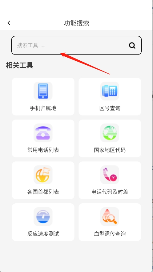 4、点开需要的工具,这里以“号码归属地查询”为例