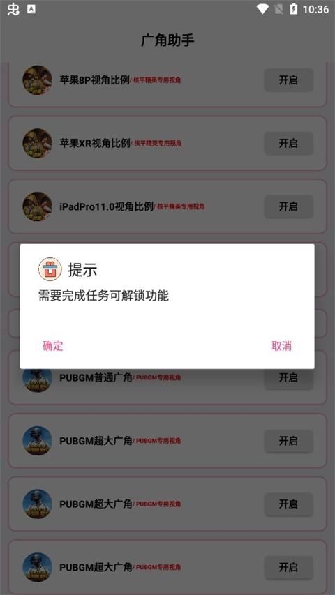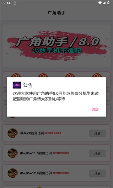 1、打开软件直接,找到想要体验的广角类别,点击右边的开启。