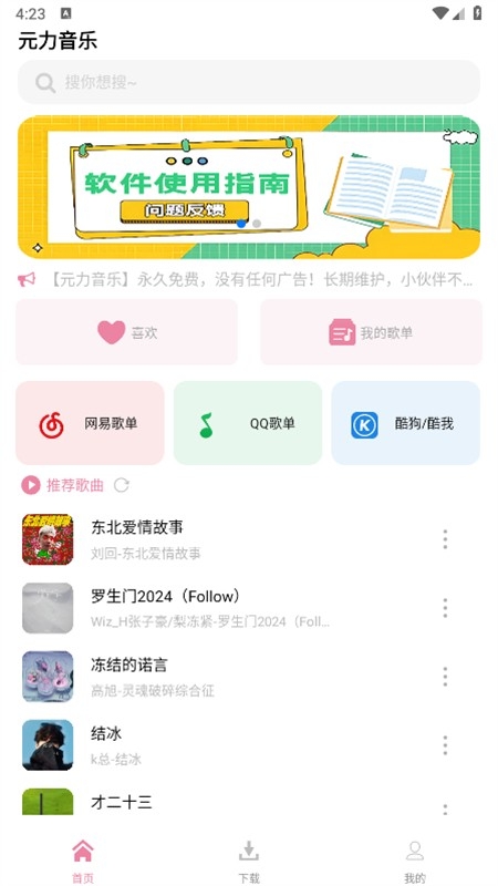 无广告体验:该软件承诺没有任何广告,为用户提供一个纯净的听歌环境。