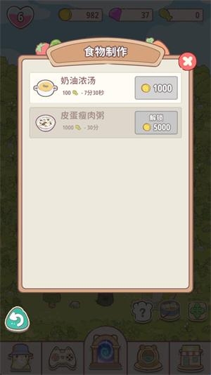 4、点击家园下方的大锅来为猫咪制作美食,制作完毕后会获得小鱼干,消耗小鱼干可以给猫咪升级。