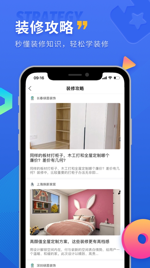 5,装修攻略:提供丰富的装修知识和经验分享,帮助用户学习装修技巧。