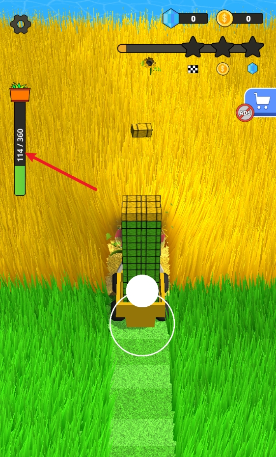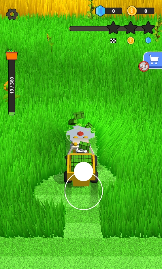 1、游戏中,拖动屏幕即可移动割草机,靠近草堆即可收集草料。